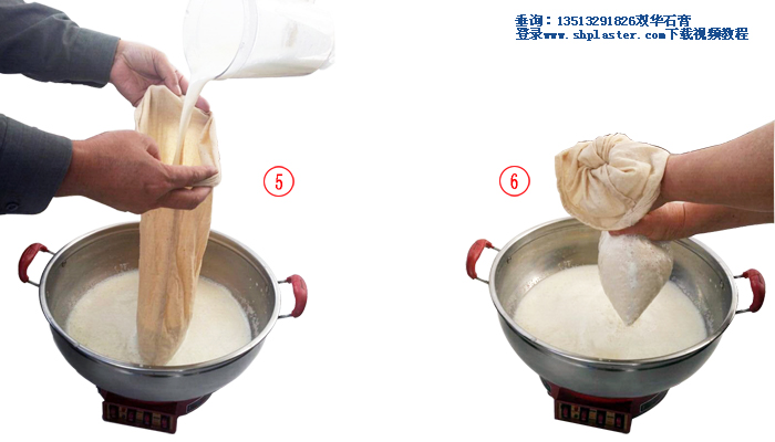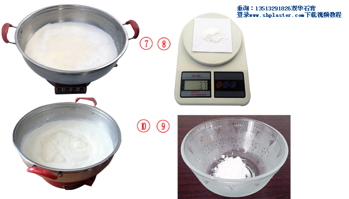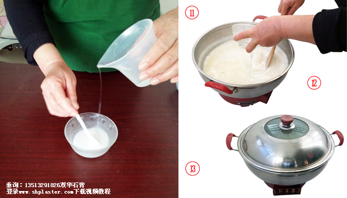 步驟11:把食品級點(diǎn)豆腐石膏粉和水迅速混合,快速攪拌成石膏漿。